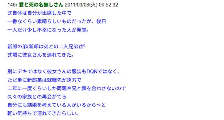新郎の弟が式場に彼女を連れてきた。新郎弟は「自分にも結婚を考えている人がいるから〜」と軽い気持ちで連れてきたようだけどこの後…