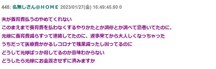 バツ1旦那「養育費もう払いたくない!元嫁に連絡して、ごねたら調停だっ!!」息巻いてたのに、返事来てからおとなしく払いだした。うちも大変なのになんで元嫁ばっかり得してるの?