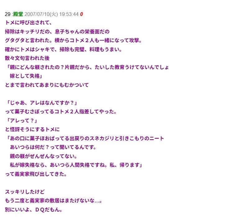 トメからのお小言に喝!トメ「親の躾は?嫁として失格!」→私「じゃあ、あれはなんですか?お菓子貪ってる出戻りシスターズは?あいつら人間・・・」