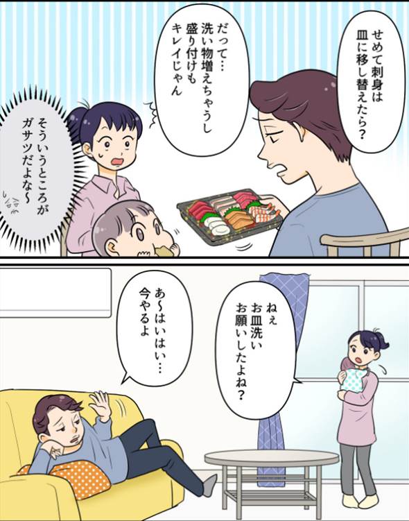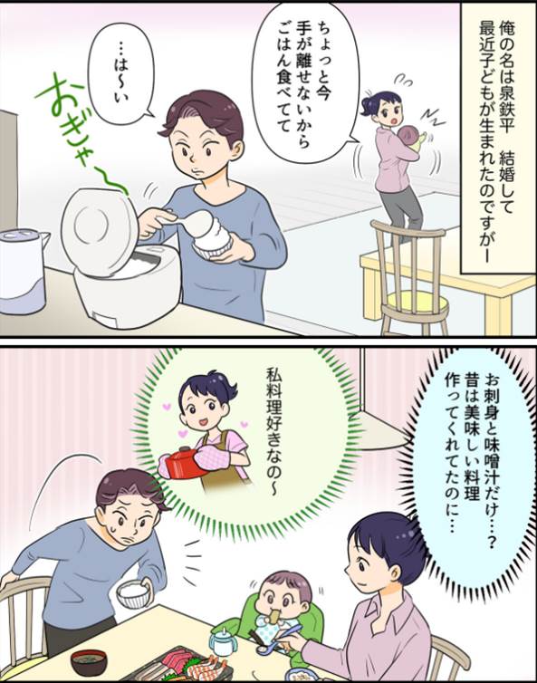 え…夕食これだけ…? 子どもが生まれて変わってしまった妻/自分勝手な夫の末路(1)【夫婦の危機 まんが】