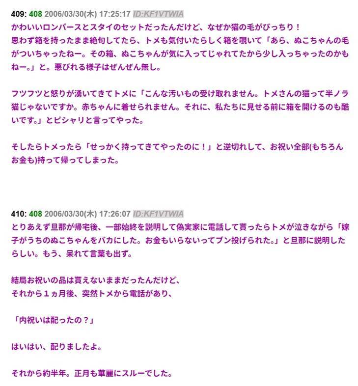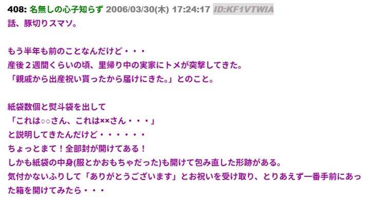 トメ「親戚に出産祝い貰ったから届けに来たよ!」私「ありがとうございます」→開けてみると...なんと全部封が開けてあった!←ひどい・・・・・