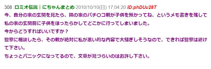 「子供を預かってね」というメモを残して子供を私の家の前に放置してどこかに行ってしまった隣人 → 子供を警察に保護してもらうと深夜3時に放置夫婦が激怒しながらうちに来て…