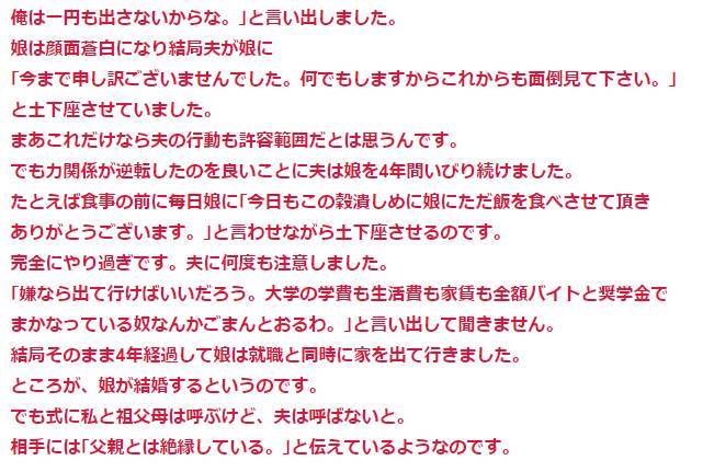 反抗期に突入して「お父さん臭い」「お父さんウザイ」と言っていた娘に内心怒り心頭だった夫「大学合格おめでとう。臭くてうざいお父さんに学費出して貰う必要はないな?」→そして…