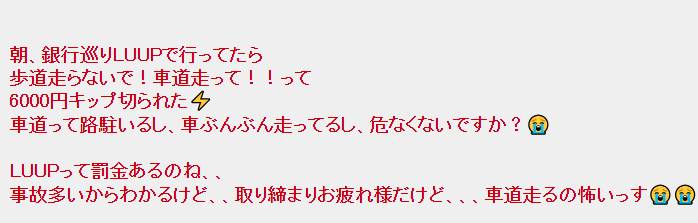 女性「電動キックボードで歩道走ってたらキップ切られた・・・車ぶんぶん走ってるから車道は危なくない?車道走るの怖いよ」